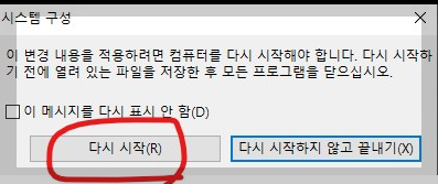 다시 시작 버튼을 누르면 컴퓨터가 재부팅되면서 안전모드로 부팅이 됩니다.