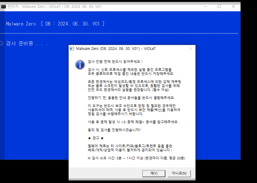 팝업창이 열리면 예를 눌러서 진행해 주시면 검사가 진행됩니다.