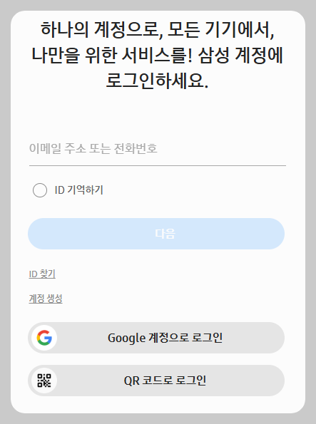 삼성스 계정에 등록된 구글 계정의 비밀번호를 입력하고 로그인을 누르시면 됩니다.