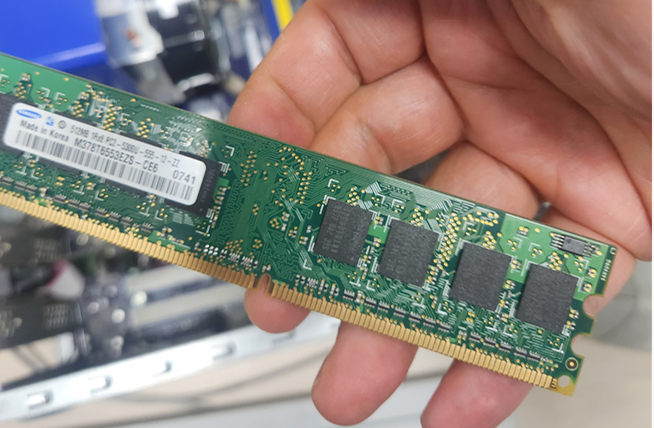 메모리 카드를 뺏다 끼우는 방법은 아주 쉬운데요. 컴퓨터 본체를 열고 끼워져 있는 메모리 카드의 양쪽 가이드를 눌려서 메모리 카드를 빼면 됩니다.
