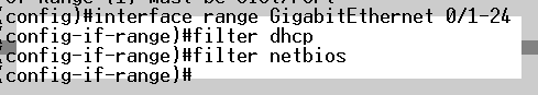 switch(config-if-range)# filter dhcp gi1-24